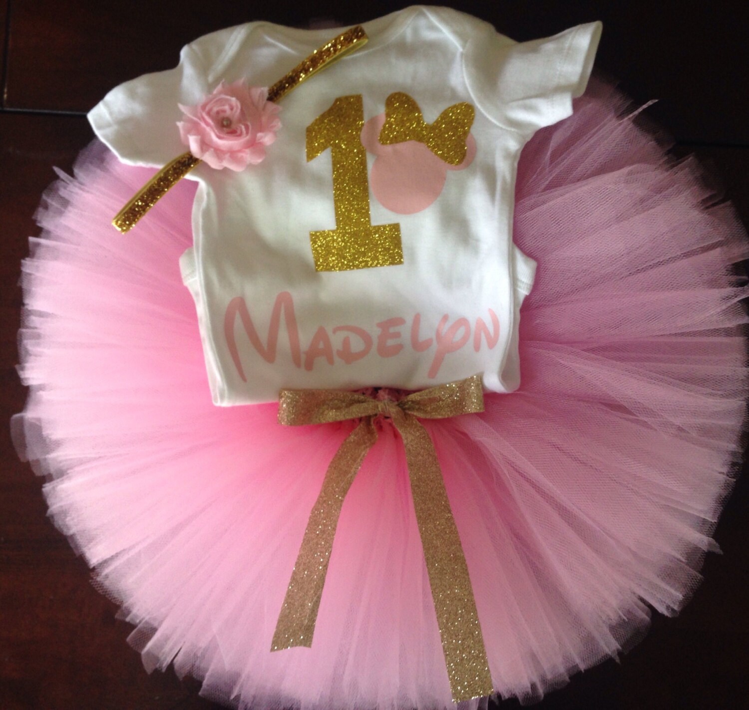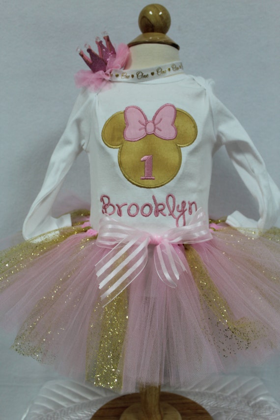 16+ Minnie Mouse 1St Birthday Outfit Pink And Gold Pictures. Your little princess will look beautiful in this precious romper. This gorgeous item features a pretty glitter birthday minnie design.