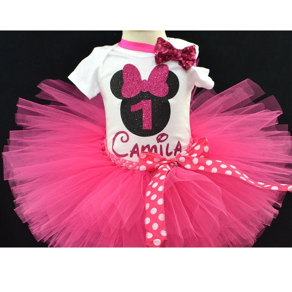 18+ Minnie Mouse First Birthday Outfit Pink And Black Background. Minnie head is made from gold glitter paper, food stick and pink tulle. Minnie mouse pink and black 1st birthday shoes and headband, minnie mouse birthday outfit pink and black, minnie mouse 1st birthday outfit.