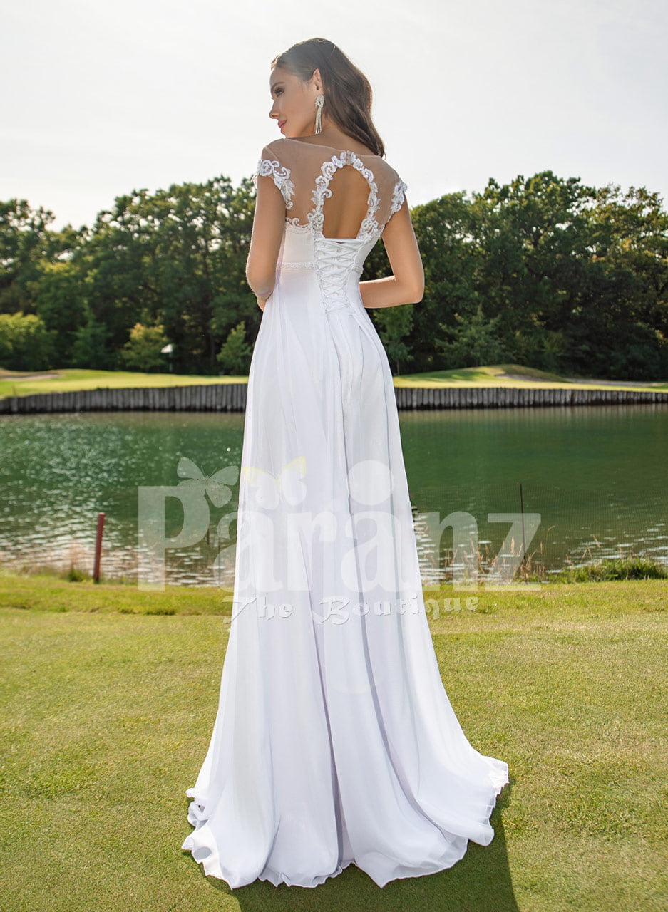 Sleeveless white floral lace tulle mermaid wedding dress crew neck bridal gown.