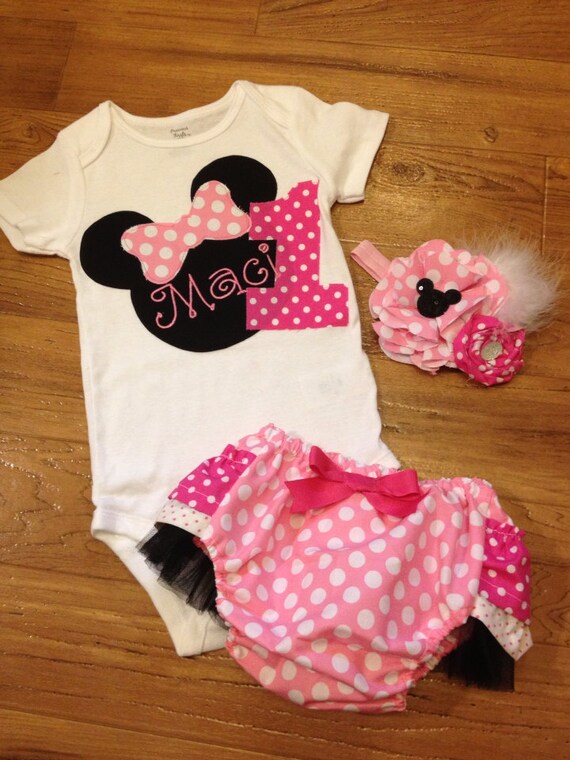 Light pink minnie mouse birthday outfit.