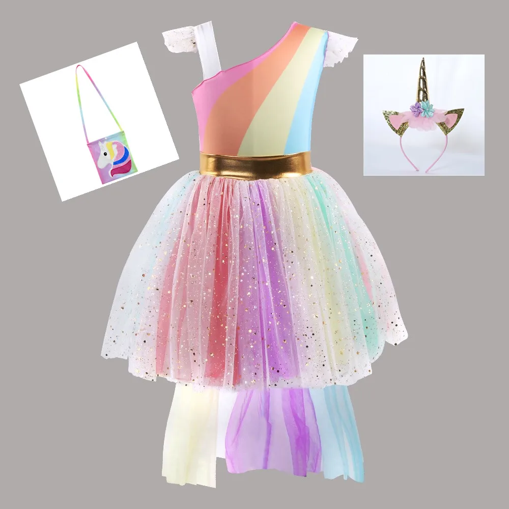 Unicorn fancy cosplay costume headband tutu dresses for girls birthday outfits.