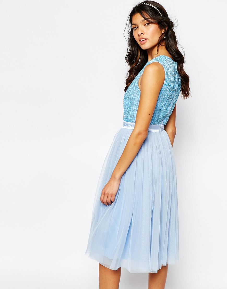 Download Tulle Midi Dress Blue Background. Layers of filmy tulle adorned so many looks on simone rocha's romantic fall '19 runway. Designed to a close fit.